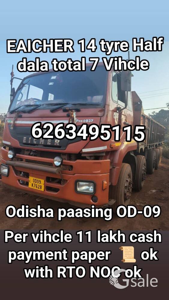 2018 model OD 09 Keonjhar paasing total 7 Vihcle 14 tyre Dala Body cash payment per Vihcal 11 lakh