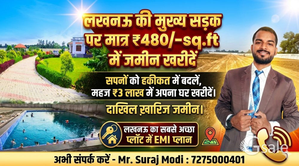आज ही इन्वेस्ट करें और पाएं सबसे अच्छे स्थानों पर जमीन SCR के अंदर लखनऊ में, इतना सस्ता कहीं नहीं मिलेगा रे बाबा ! Features:- मात्र ₹5000 पहली EMI दो प्लॉट अपने नाम करो। कोई भी बुकिंग पैसा नहीं देना है। जिला पंचायत से अप्रूव्ड साथ ही दाखिल ख़ारिज जमीन रहेगी। 4 लाइन हाइवे (SH-115) से लगी हुई इटौंजा से मॉल रोड़- 70 फिट की मेन रोड़ कम्पनी की रहेगी। बिना ब्याज के EMI देना है। (0% ब्याज रहेगा) 60 महीने EMI प्लान है। 24 पार्क, स्विमिंग पूल, रोड़, बिजली, कैमरा, सिक्योरिटी, गेटेड कॉलोनी इत्यादि।