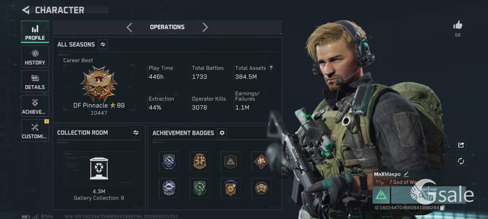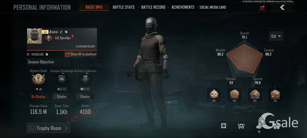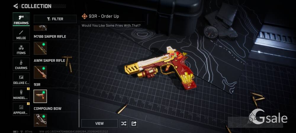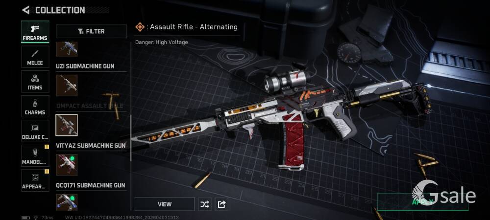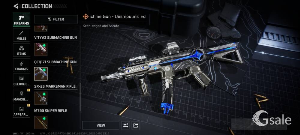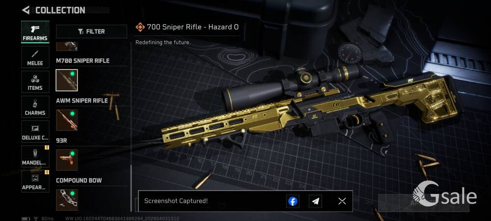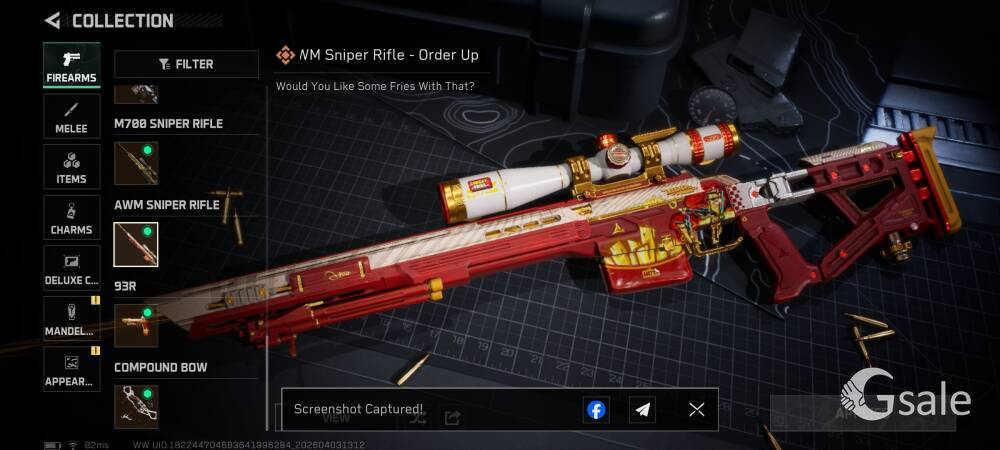 Full Ownership Of The Gmail This Single Gmail Contains Arena Breakout Mobile and Delta Force Mobile both games Data Arena Breakout Mobile 116.5 Storage Value KOEN- 55Mil T7 TI Thermal- 38 PZ3 Thermal- 3 NIT-A TI Thermal- 1 Red Item- Utopia- 2 Secret Document- 1 1 Inspectable Skin Symphony Aug 6 Slot Key chain available Delta Force Mobile Operations- 384.5 Mil Storage Value Tekniq Alloy Currency 184,067,807 Delta Ticket 144 Warfare Score- 3.7M Pretty Much All vehicle and Guns upgraded in warfare Skins- Luna Complete Skin Set Schwarz Skyline Hazard Operation Full Set Weapon Skins- AR AUG, AR K416, Sniper M700 Desmoulins' Edge Full Set Skins- Knife(Desmoulins' Edge), AR K437 , SMG QCQ171 Order Up Full Set Weapon Skin- AR CL19, Pistol 93R, Sniper AWM Alternating Current Full Set Weapon Skin- AR AK-12, SMG UZI, SMG SR-3M On Person Dealing Posible Just Come To The Location Provided Online Payment Will be Better For Both Our Safety You Can Check Both Of The Game Account Before Buying