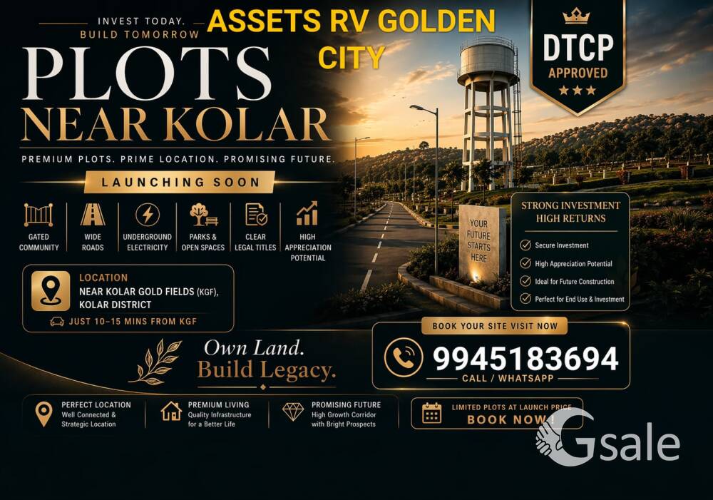 🏡 ASSETS RV GOLDEN CITY – Near KGF Kyasamballi ✅ DTCP & DC Conversion Approved ✅ Individual E‑Khata 📍 Just 220m from STTR & 5 kms from KGF 💰 Price: ₹999 / sq.ft 📏 Dimensions: 1100 to 1900 sq.ft 🎉 Grand Launch: 26th April 2026 🌟 Premium plots in a fast‑growing zone — secure your investment today! 📞 For Booking & CP Enquiries: 9945183694