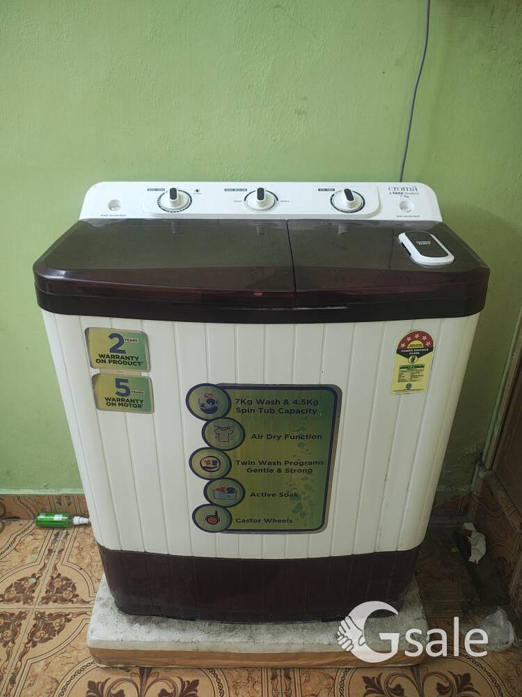 well-maintained 7kg Semi-Automatic Washing Machine. It is only Warranty: 3 Years remaining Capacity: 7kg Wash / 4.5kg Spin (Great for families). Air Dry Function: Special feature for faster drying of clothes. Programs: Gentle & Strong wash modes. Body: Rust-free fiber body with castor wheels for easy movement. Condition: Excellent, no scratches or technical issues