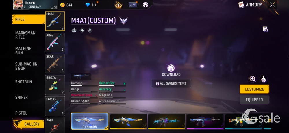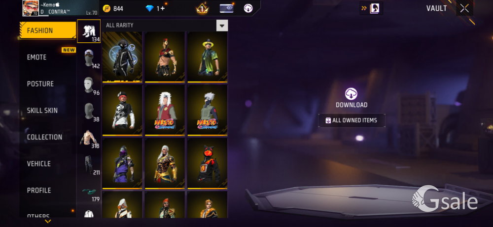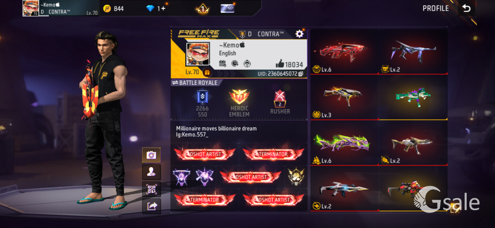 free fire id on sell 70 level