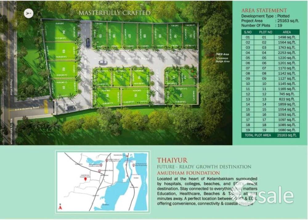*DTCP GATED COMMUNITY PLOT FOR SALE @ KELAMBAKKAM - OMR* *FROM KELAMBAKKAM MARKET ROAD JUST 1.5 KM DISTANCE* *FROM PUTHUPAKKAM RAJINI THOTTAM JUST 1.5 KM DISTANCE* ♦️Plot area : Minimum 745 Sq.ft to Maximum 2253 Sq.ft ♦️Total plots - 19 ♦️Bank Loan Available ♦️Facing : East , West , North & South ♦️Road : 30 ft ♦️DTCP / RERA Approved Plots ♦️Rate : Per sq.ft rate 4999/- *IT IS VERY NEAR TO MOST HAPPENING PLACES LIKE HOTELS , MARKETS , SCHOOLS , COLLEGES , RESORTS , BUS STAND & HOSPITALS* *CONTACT: 9003196146*