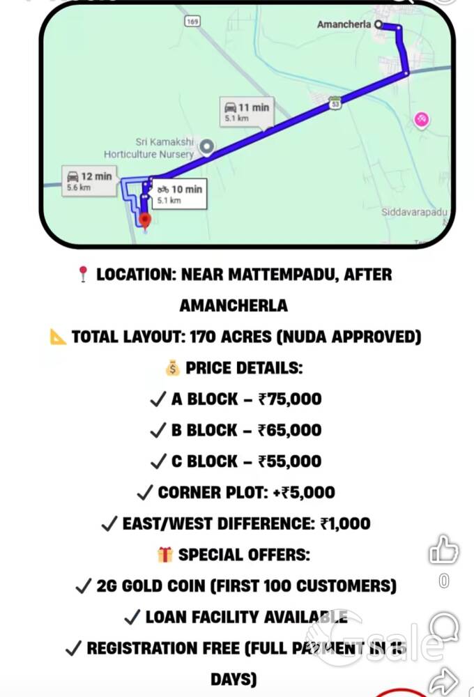 Rs.55,000/- per Ankanam Nuda Layout 170acres near Amancharla Marupur.. 20,25,30,33,40, 50 anka available