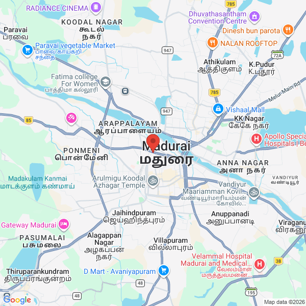 ₹16,000 - ₹21,000 | MonthlyPosted on 08 February 2026 - 04:04 PM85A, Kochi-Madurai-Tondi Point Rd, Main, Madurai Main, Madurai, Poondhotam, Tamil Nadu 625001, India