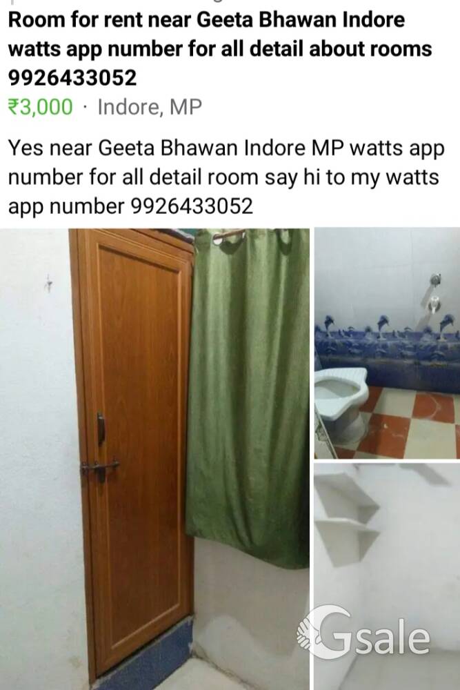 रूम रेंट गीता भवन मंदिर के पास इंदौर सेंट पॉल स्कूल के varda vihar complex ke passआगे मात्र 3000, में व्हाट्सएप नंबर 9 9264 33052, for all details, Indore