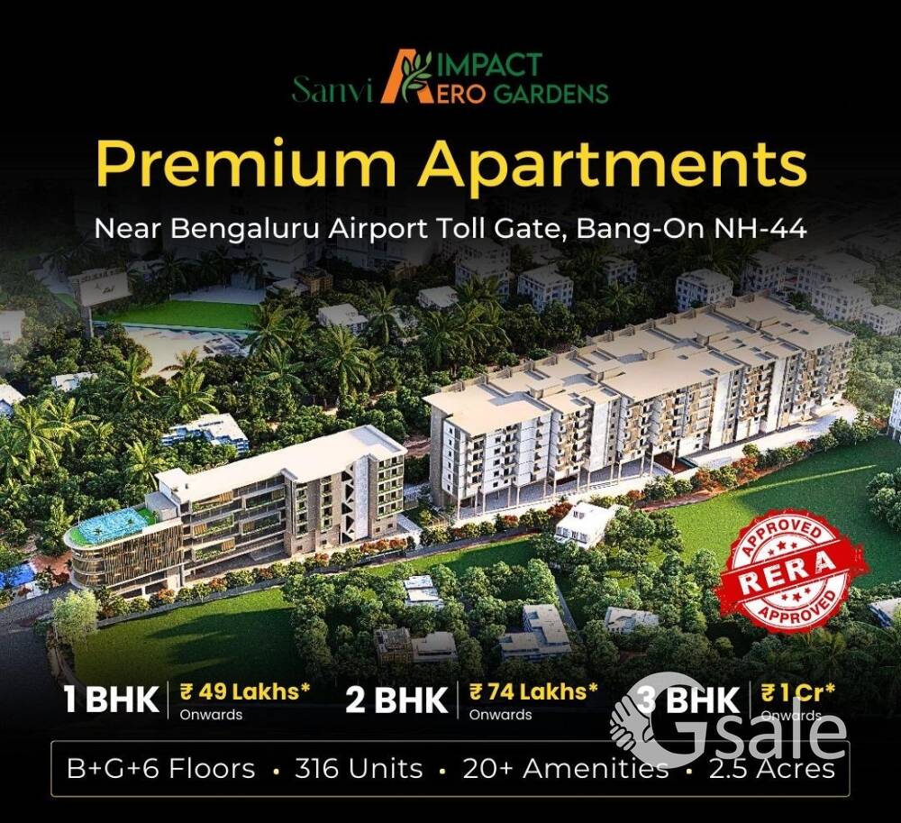 Dear Sir/Madam, Thank you for showing interest in *IMPACT AERO GARDEN* _Premium Apartments_ *Near: Bangalore Airport* *FACILITIES WITHIN 1-2 KM RADIUS* → ~900 mts from Airport Toll-gate. → Bang on the service road of NH44 → KSIIDC Bangalore Signature Business IT Park → Suburban Railway | Metro Station | Forum Mall → Bank | ATM | Hospital | Nagarjuna College → MVM CBSE School | National Public School *PROJECT HIGHLIGHT* → High Rental & Resale Value → 2.5 acres | 2B+G+6 Floors | 316 Flats. → Premium 1, 2, & 3BHK Flats Vastu compliant → No common walls | 9.5ft ceiling height | Club house *Possession: Dec'2027* *Price Starting from* *1BHK: ₹49 Lakhs** *2BHK: ₹75 Lakhs** *3BHK: ₹1.02 Cr** *Amenities:* Clubhouse | Indoor Games | Indoor Gymnasium | Jogging Track | Yoga Lawn | Swimming Pool | Kid's Pool | Children’s Play Area | Multipurpose Hall | Guest Waiting Lounge | EV Charging Units. *Walkthrough Video:* https://youtu.be/QuMYXsjKy-4?si=KuxL9rYNOofJXROw *Project Location:* https://maps.app.goo.gl/9Xk3qTDxHjeiUYD5A *About SANVI GROUP:* 25 Years of Construction Experience with 5 Completed & 2 Ongoing Projects. Please call back for any queries, will be happy to serve you.