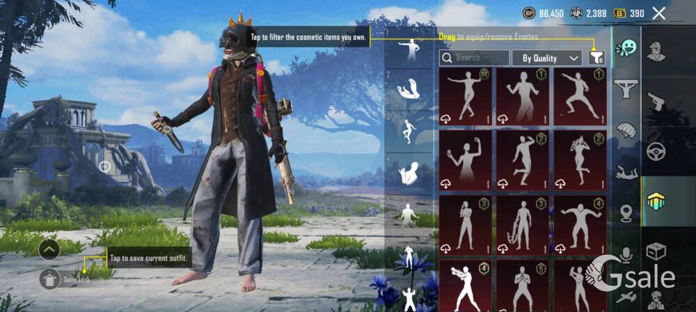 62:- collection level 77:- id level 51:- 1time room card 79 :- 1day room card 29 :-7days room card 3mythic :- emblem Mythic fasion title X-suit level 2 14 upgradeable guns :- with premium mg3 with kill message Grenade and molotov with kill message Upgraded dacia Inferno helmet + joker mask season 2 2 modification material With 5 modification material peice 3 special characters Sara andy and lorenzo Many cars skin Almost minimum 3 skins off every gun skins Rename card available for more details and little bargaining contact me on 9822277408