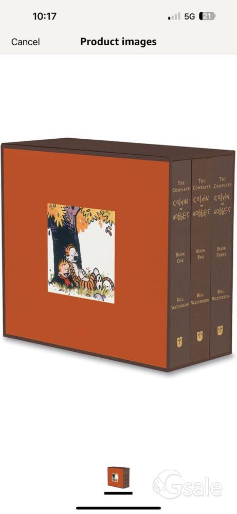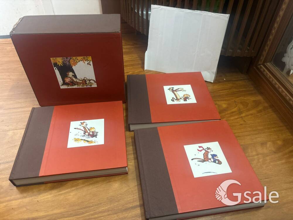 The Complete Calvin And Hobbes collection of the famous comic strip. The Complete Calvin And Hobbes collection is composed of three hardcover, four-color in a sturdy slipcase. The book is available in hardcover. The strip revolves around the relationship between the two as Calvin goes out of his way to create trouble while Hobbes tries to steer him out of it. It's sarcastic, sardonic and has such wonderful dry humor that it is bound to make smile. My son bought this two years back, but he could not carry due to excess luggage. Still the hardcover volume is fresh and unused and suitable for kids and adults. Its 13 digit ISBN no is 978-0740748479.