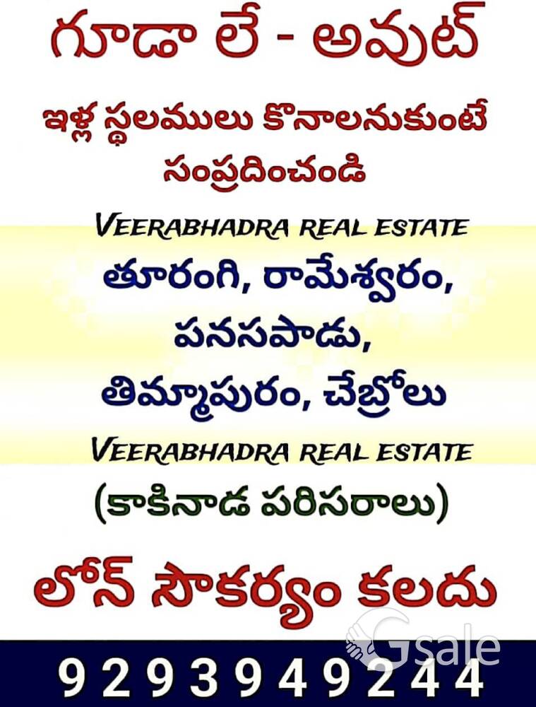 కాకినాడ చుట్టు పక్కల ఏరియాలలో ఇళ్ళు, ఇళ్ల స్థలములు, అపార్ట్మెంట్ లలో ఫ్లాట్ లు, గూడా అప్రూవల్ ప్లాట్స్, అమ్మబడును, మరియు కొనబడును...., అదేవిదంగా సైట్ కొనుక్కోవడానికి, ఇళ్ళు కొనుక్కోవడానికి, ఇంటి పై ఇతర ఫ్లోర్స్ నిర్మించు కొనుటకు, ఇళ్ళు బాగుచేసుకోవడానికి, అపార్ట్మెంట్ లో ఫ్లాట్స్ కొనుక్కోవ డానికి లోన్స్ చేయబడును.... అతి తక్కువ వడ్డీ రేటు,