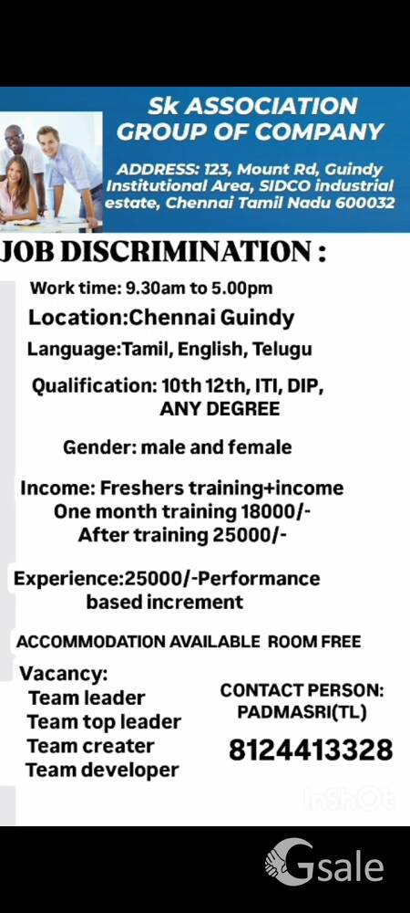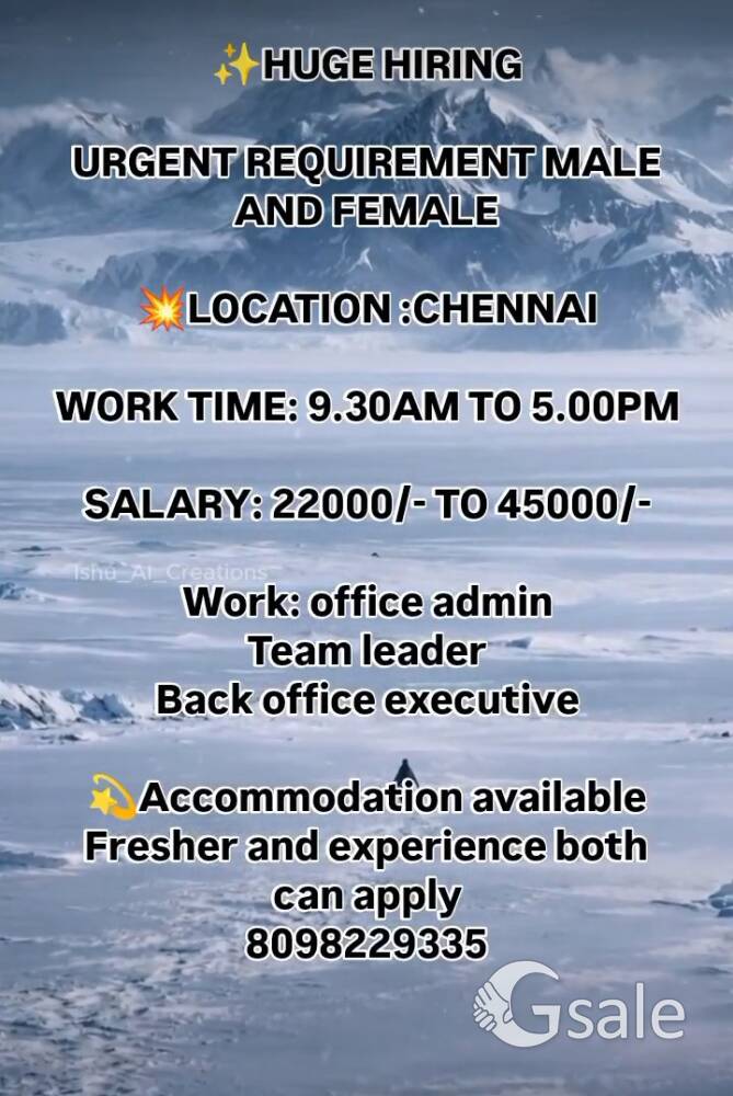 💥Urgent Requirement for Permanent Job Available ☎️Contact: 8124413328 ✨QUALIFICATION:- 10th to 12th & any degree + Fresher and Experience required ✨WORK :- Office work ✨AGE. :- 18-40 ✨GENDER :- Male & female ✨INCOME:- 18000/- to 45000/- + General shift +No target No pressure 🏠Room accommodation & Food Free More details call me 8124413328