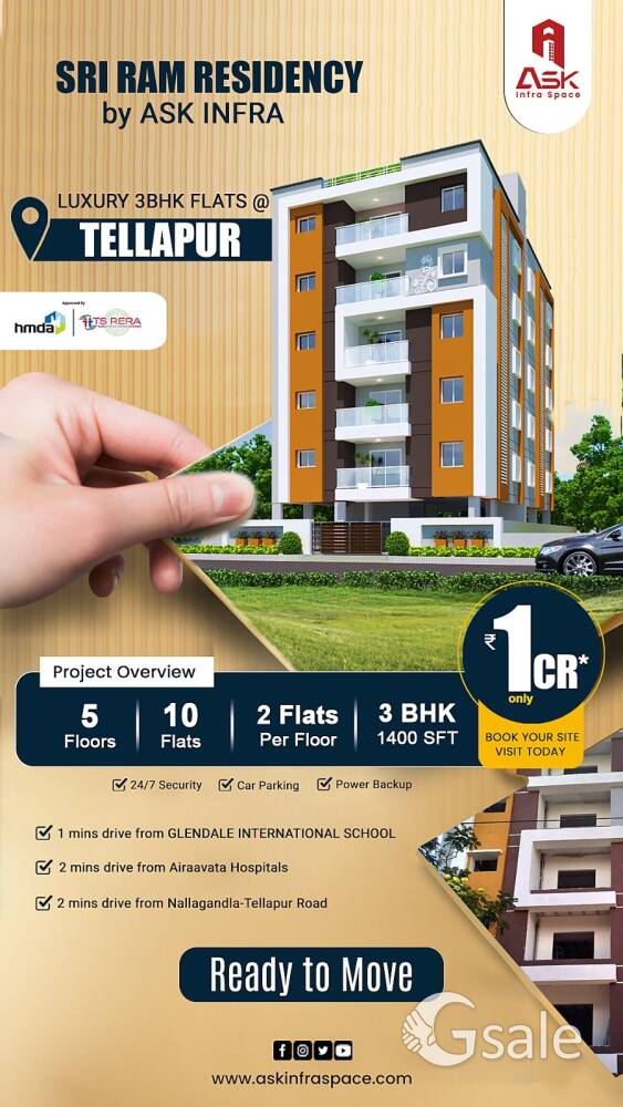 3 Bhk Flats For Sale In Tellapur, 3 Bhk Flats In Tellapur, 3bhk Flats In Tellapur
