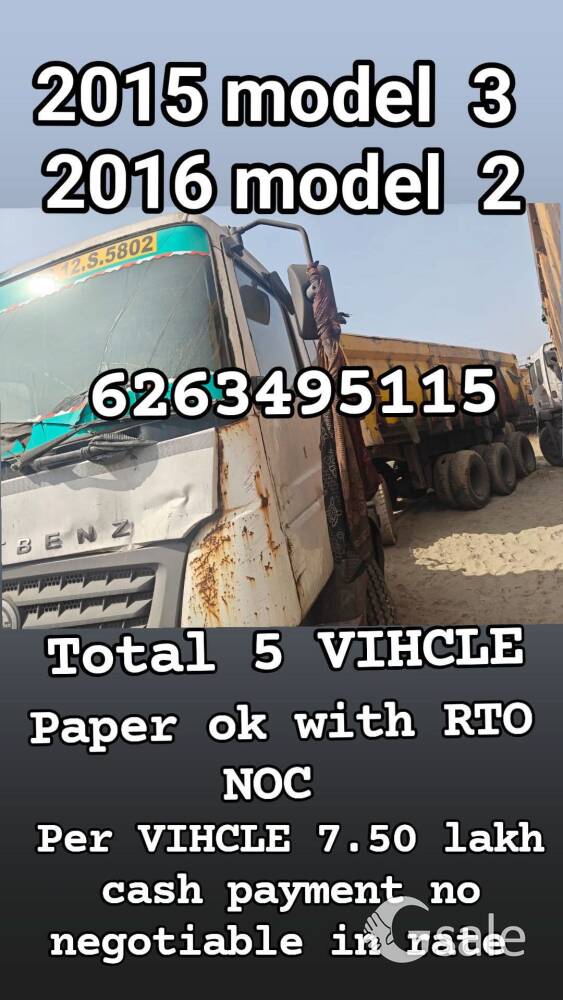 BHARAT BENZ TIP TRAILER 18 TYRE 40-50-60% TOTAL 4 2015-2, 2016-2 PER VIHCLE 750000 LAKH CASH PAYMENT