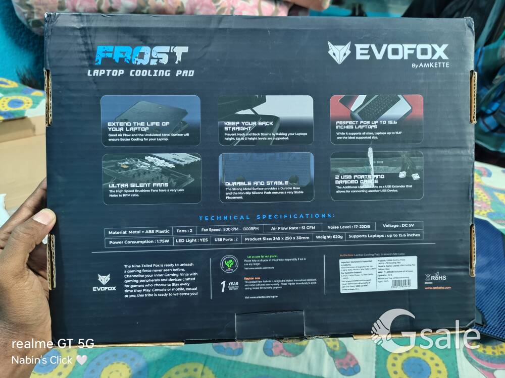 • Zebronics Transformer Gaming Keyboard and Mouse Combo, Braided Cable, Multimedia keys and Gaming Mouse with 6 Buttons, • All Product Are Discount • EvoFox Frost Laptop Cooling Pad with 1000 RPM 2X Silent Fans, 5 Adjustable Angles, LED Lights, Durable Metal Mesh Surface, • Clarion Wireless Mouse • All Products Are Totally New Condition And Under Warranty